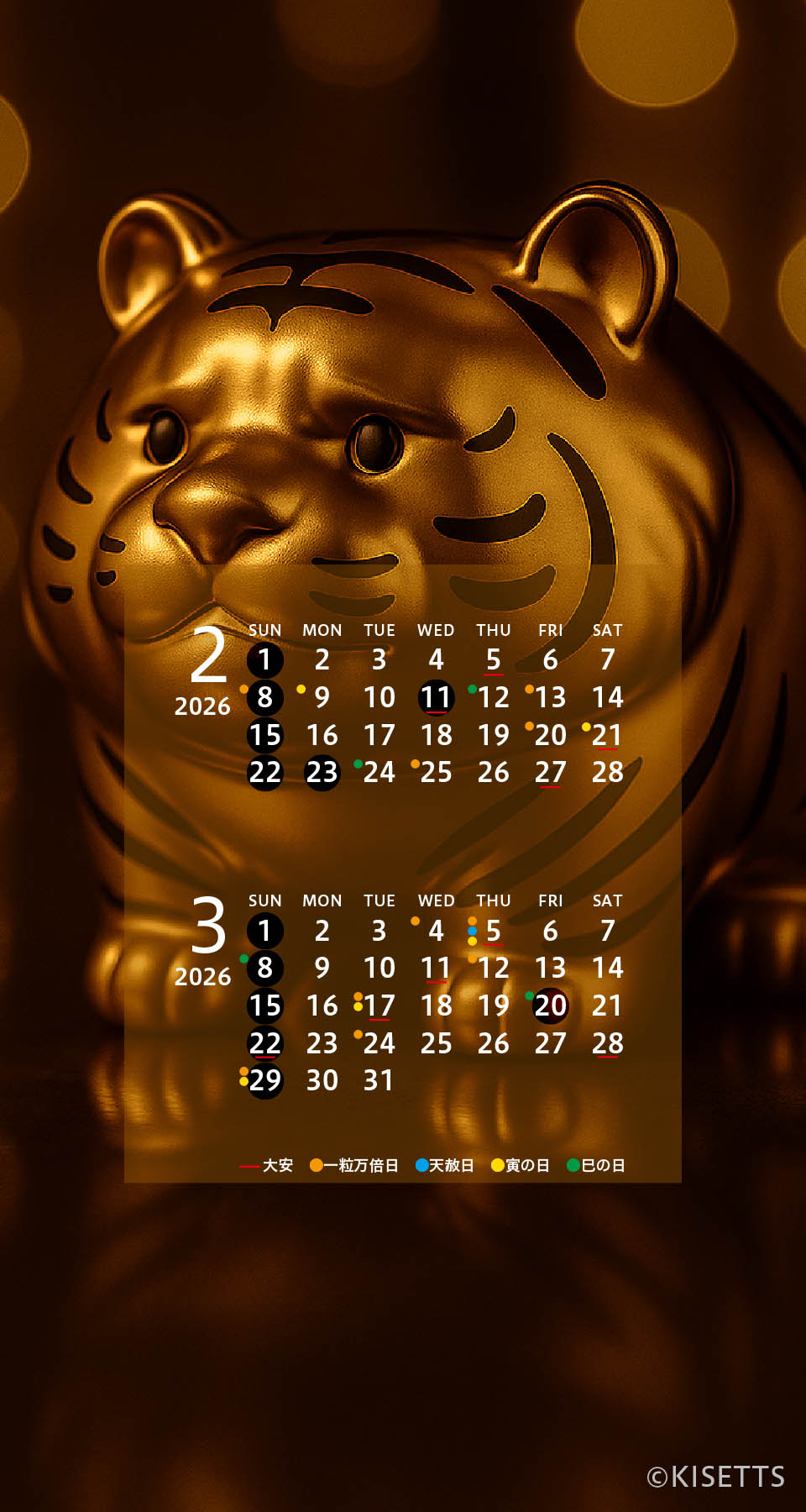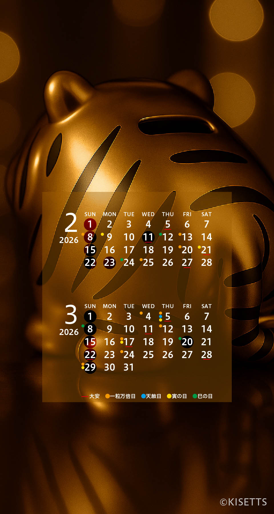 キセッツオリジナルのおしゃれな待ち受け画像・待ち受け画面を毎月更新。カレンダーも開運日も。