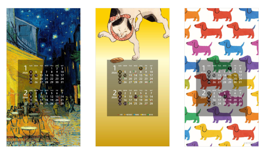 - ロック画面:同じアートの「カレンダー付き待ち受け画像」